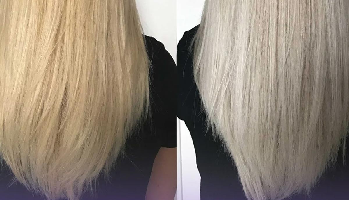 شامپوی بنفش اولین و ساده‌ترین انتخاب برای خنثی کردن زردی است. این شامپو حاوی رنگ‌دانه‌های بنفش است که به صورت مستقیم تناژ زرد را خنثی می‌کند. برای اینکه بهترین نتیجه را بگیرید، شامپو را روی موهای نیمه‌مرطوب بزنید و اجازه دهید دو تا پنج دقیقه بماند. بیش از حد طولانی نگه داشتن شامپو می‌تواند مو را خاکستری کند، پس همیشه مدت استفاده را کنترل کنید. معمولاً یک تا دو بار در هفته کافی است.